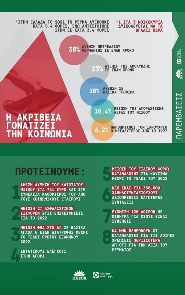 Παρουσιάστηκαν αντίστοιχα και οι προτάσεις – θέσεις του ΠΑΣΟΚ-Κινήματος Αλλαγής για την ακρίβεια και τόνισαν ότι η Κυβέρνηση πρέπει να σταματήσει να κρατάει ίσες αποστάσεις από την ακρίβεια και τα προβλήματα των πολιτών και να υιοθετήσει τις προτάσεις του ΠΑΣΟΚ – Κινήματος Αλλαγής, όπως: