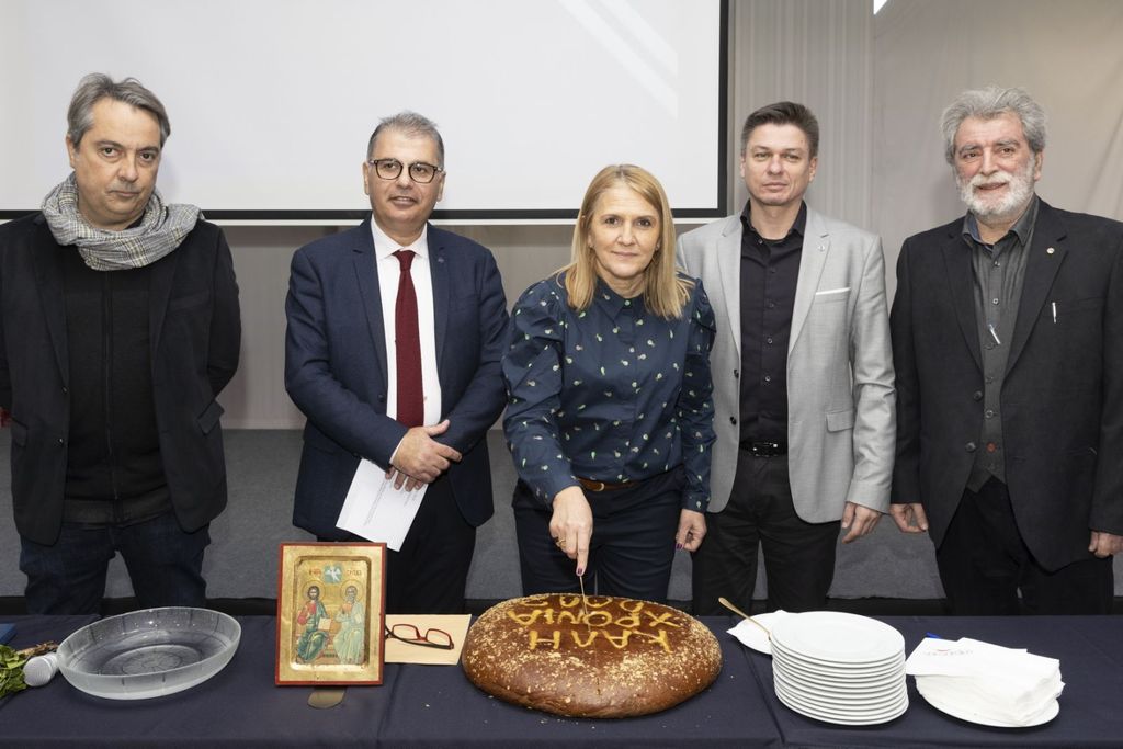 Το φλουρί της βασιλόπιτας ήταν στο κομμάτι της Εκκλησίας, ενώ τα δώρα που κληρώθηκαν κέρδισαν οι συνάδελφοι Νίκος Μόσχοβος και Θάνος Καληώρας.