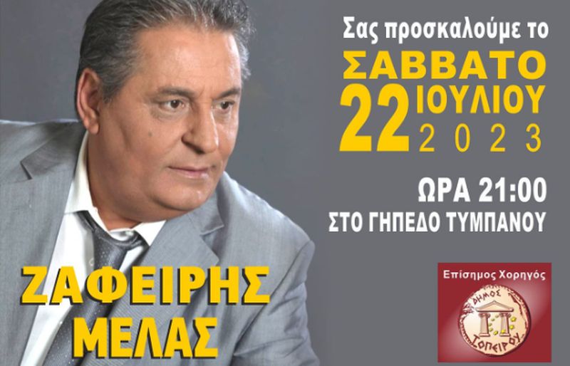Ο Μορφωτικός Πολιτιστικός Σύλλογος «Τυμπάνου» διοργανώνει μια ιδιαίτερη βραδιά με τον Ζαφείρη Μελά