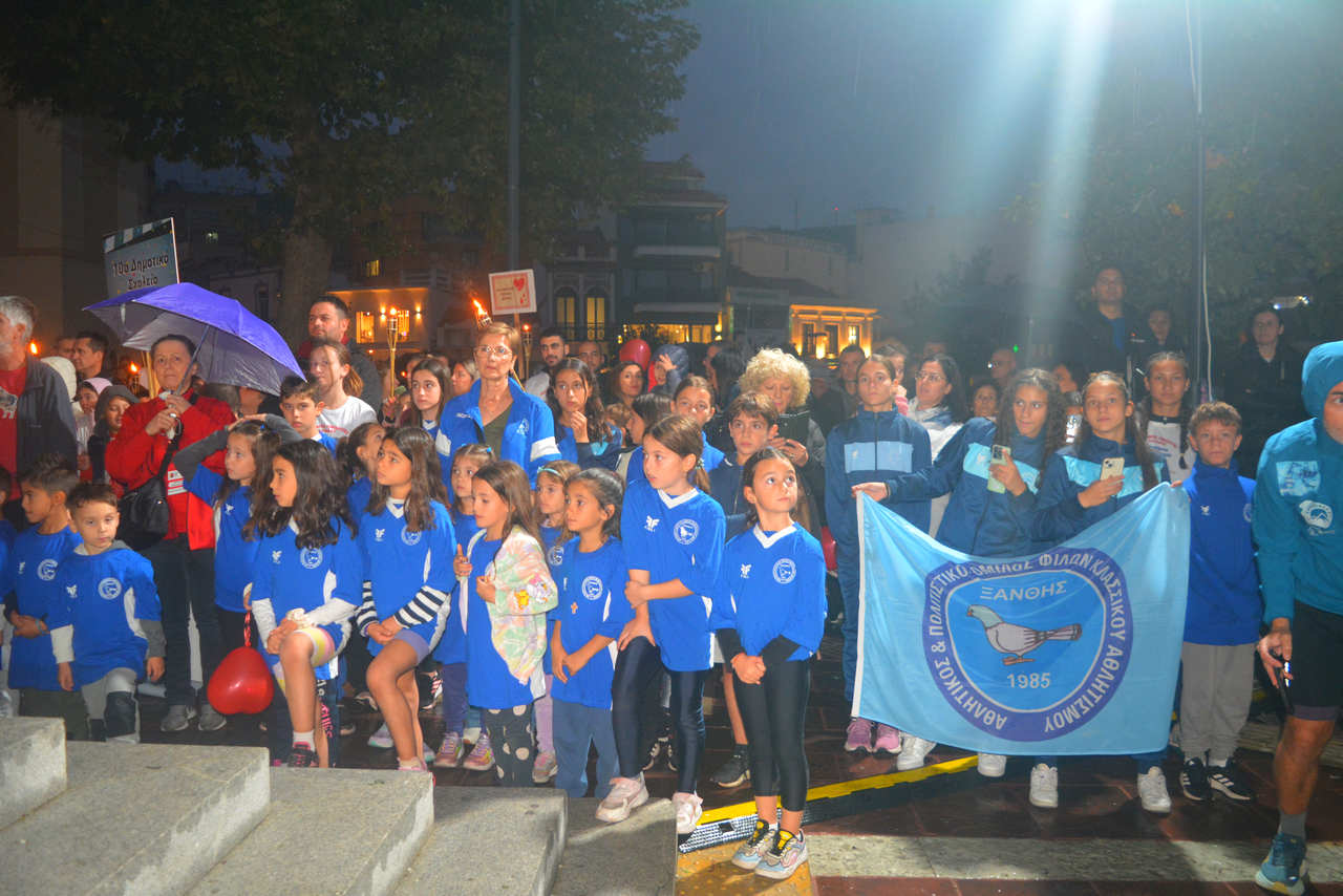 Στις 17:00 εκκίνησε η Λαμπαδηδρομία από το Γηροκομείο Ξάνθης, «Ο Μέγας Βασίλειος» και μεταφέρθηκε μέσω των οδών Γηροκομείου, Εθελοντή Αιμοδότη, Ηλιουπόλεως, Πραξιτέλους, Μαραθώνος, Ανδρέου Δημητρίου, Φειδίου, 28ης Οκτωβρίου, Πλατεία Ελευθερίας στην Πλατεία Δημοκρατίας, στην κεντρική πλατεία της Ξάνθης