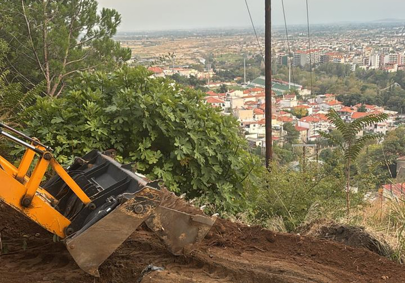 Στο πεδίο της βλάβης τα μηχανήματα της επιχείρησης που ανοίγουν δίοδο ώστε να προσεγγίσουν το σημείο και ο Πρόεδρος της ΔΕΥΑΞ Γιάννης Ζερενίδης, δίνει κατευθύνσεις.