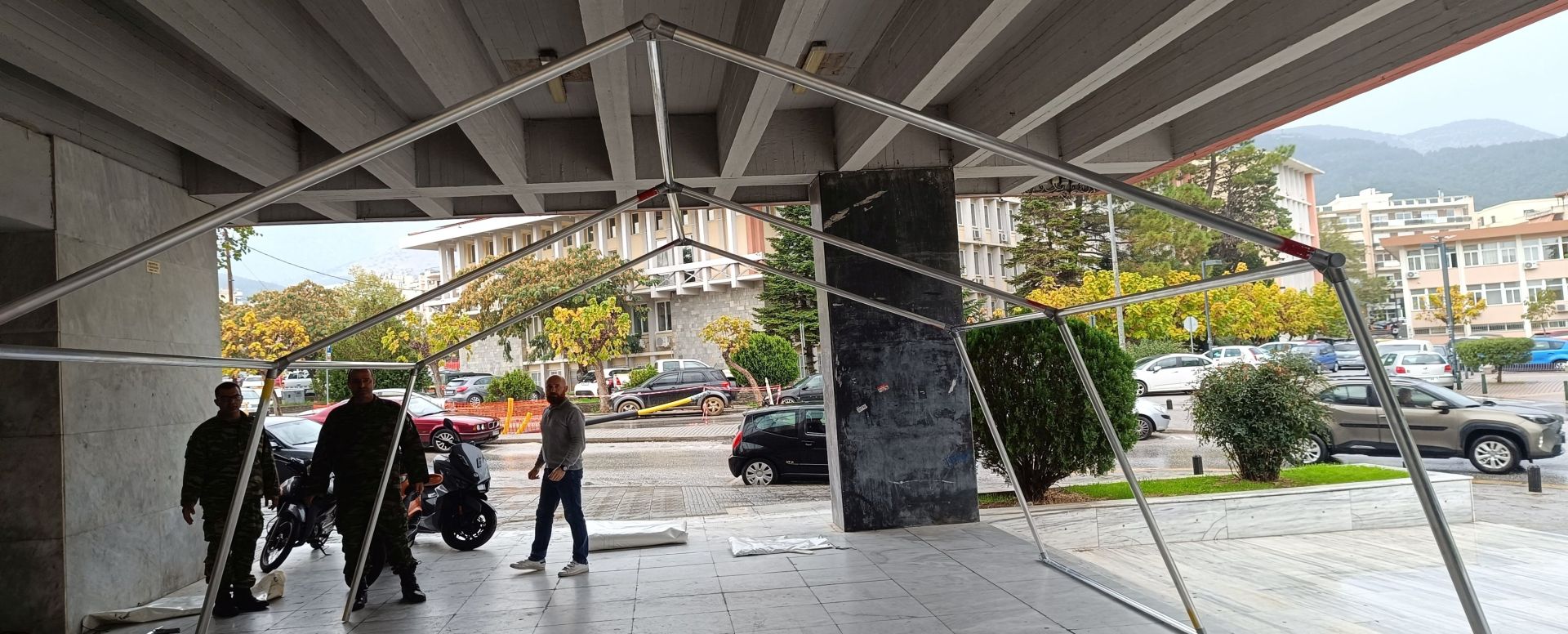 Έγινε εκπαιδευτικό στήσιμο σκηνής πολιτικής προστασίας στρατιωτικού τύπου προκειμένου να είναι οι εμπλεκόμενοι φορείς σε ετοιμότητα επί ανάγκης άμεσης χρήσης της.
