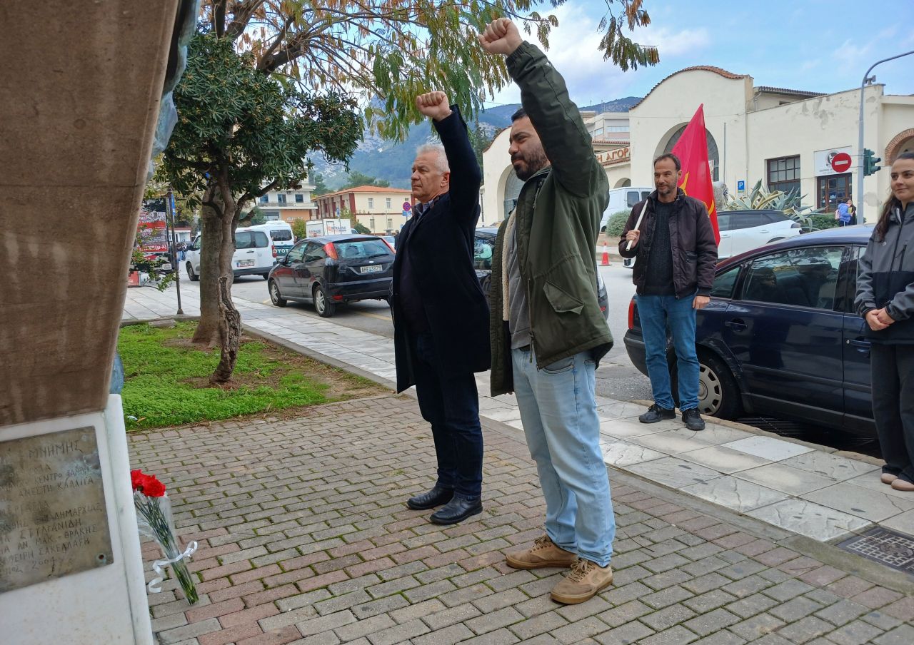 Αντιπροσωπεία των Τομεακών Οργανώσεων Ξάνθης του ΚΚΕ και της ΚΝΕ με επικεφαλής τον γραμματέα της Τομεακής Επιτροπής Ξάνθης του ΚΚΕ Σάκη Βαρδαλή κατέθεσαν σήμερα λουλούδια στο μνημείο των πεσόντων καπνεργατών τιμώντας τους νεκρούς του Πολυτεχνείου και όσους αγωνίστηκαν ενάντια στην 7χρονη δικτατορία.