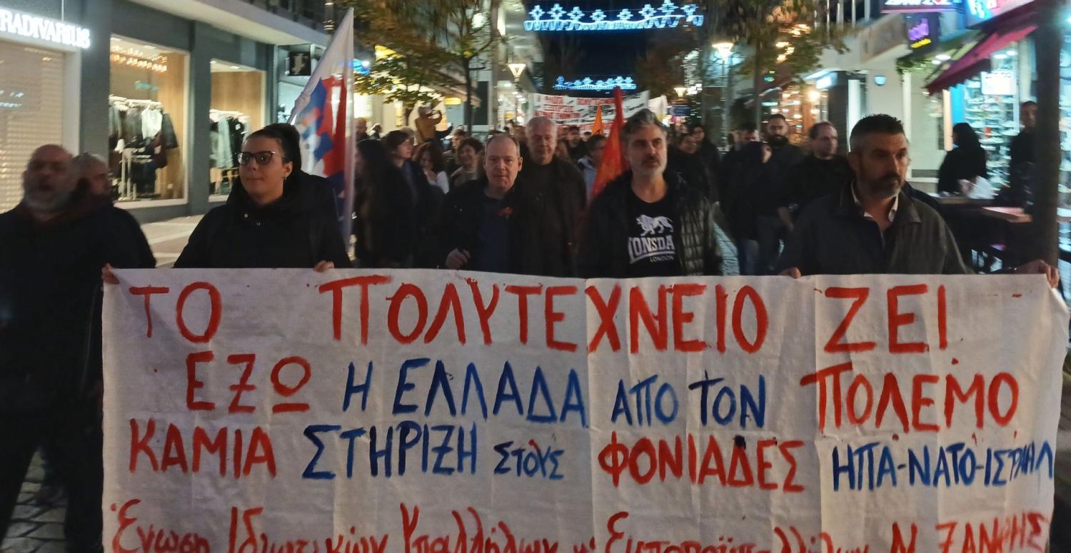Μια από τις μεγαλύτερες αντιιμπεριαλιστικές πορείες των τελευταίων χρόνων έστειλε δυνατό το μήνυμα συνέχισης και κλιμάκωσης του αγώνα ενάντια στους ιμπεριαλιστικούς σχεδιασμούς και την εμπλοκή της χώρας μας στους πολέμους, την αλληλεγγύη στον λαό της Παλαιστίνης, αλλά και για την ικανοποίηση των σύγχρονων αναγκών του λαού για δουλειά με δικαιώματα, Παιδεία και Υγεία, ενάντια στη φοροληστεία που τσακίζει το εισόδημά του.