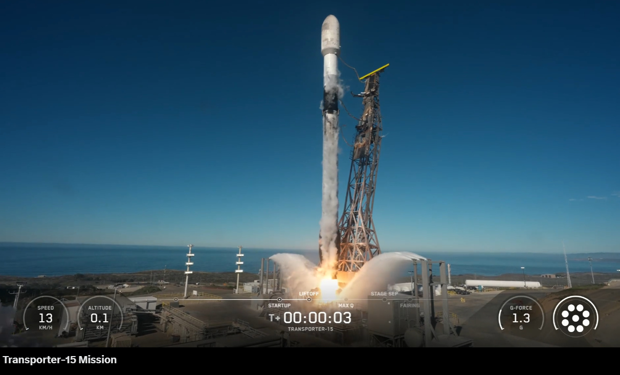 Με απόλυτη επιτυχία εκτοξεύθηκε την Παρασκευή 28 Νοεμβρίου, στις 8:44 μ.μ. ώρα Ελλάδος, η αποστολή Transporter-15 της SpaceX με πύραυλο Falcon 9 από τη βάση Vandenberg Space Force Base στην Καλιφόρνια.