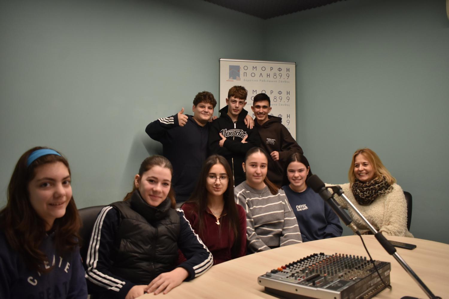 Ομάδα μαθητών και μαθητριών των δύο τμημάτων της Γ΄ τάξης μαζί με την εκπαιδευτικό του σχολείου Στέλλα Δενδηλιάρη, φιλοξενήθηκαν στην ενημερωτική εκπομπή του Δημοτικού Ραδιοφώνου Ξάνθης, όπου παρουσίασαν το πρόγραμμα, που υλοποίησαν στο πλαίσιο του μαθήματος, τα βήματα, που ακολούθησαν μέχρι το τελικό αποτέλεσμα, μεταφέροντας τις μοναδικές εμπειρίες, που έζησαν με τη χρήση της Τεχνητής Νοημοσύνης, δίνοντας μάλιστα και όνομα στο ρομπότ , που ερμηνεύει τα τραγούδια τους.