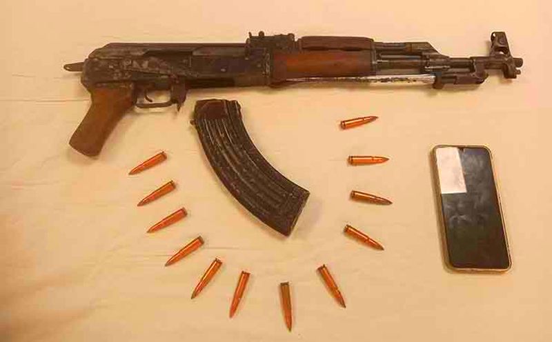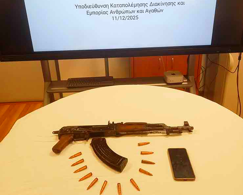Κατά τον έλεγχο που πραγματοποιήθηκε σε τροχήλατη βαλίτσα που έφερε, βρέθηκε και κατασχέθηκε πολεμικό τυφέκιο καλάσνικοφ, καθώς και μια γεμιστήρα με -12- φυσίγγια, τα οποία έχουν αποσταλεί στη Διεύθυνση Εγκληματολογικών Ερευνών για εργαστηριακή εξέταση.
