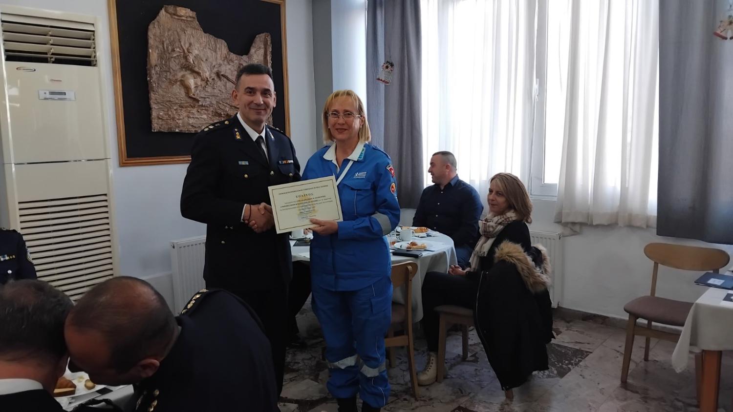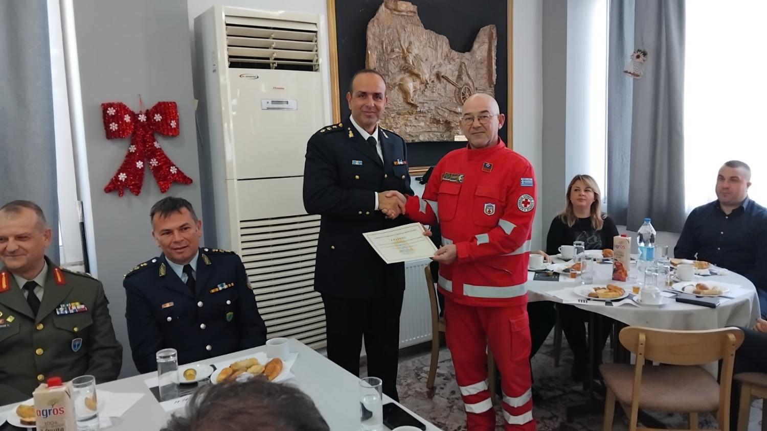 Ακολούθησε μικρή δεξίωση για όλους στη Λέσχη Αξιωματικών Φρουράς Ξάνθης, όπου τιμήθηκαν οι Εθελοντικές Ομάδες Ξάνθης που τα πιστοποιημένα, από την Υπηρεσία μας, μέλη τους συμμετείχαν στη δασοπροστασία του περιαστικού δάσους Ξάνθης κατά τη φετινή αντιπυρική περίοδο (Ελληνικός Ερυθρός Σταυρός, Κυνηγετικός Σύλλογος Ξάνθης, Ελληνική Ομάδα Διάσωσης και Ο.Δ.Ι.Α.Κ.). Είναι αυτοί που αφιερώνουν τον ελεύθερο και πολύτιμο χρόνο τους για το καλό του κοινωνικού συνόλου, για την αγάπη τους προς τη φύση και την ιδέα του εθελοντισμού. Επίσης, ένας σταυρός περιπάτου δωρίθηκε στον Σεβασμιώτατο Μητροπολίτη κ.κ. Παντελεήμων για την 30ετή ποιμαντορία του στην Ιερά Μητρόπολη Ξάνθης και Περιθεωρίου.