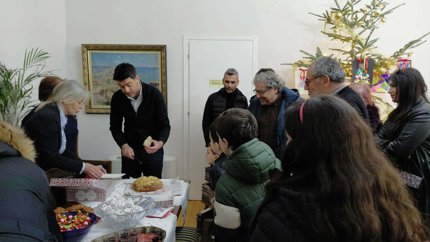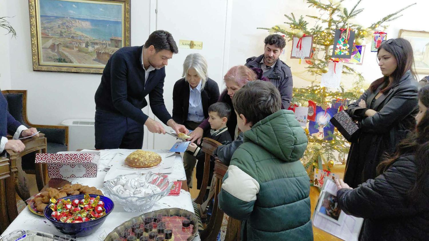 Κατά τη διάρκεια της επίσκεψης κόπηκε και η καθιερωμένη βασιλόπιτα, με το φλουρί να τυχαίνει στον Αντιδήμαρχο κ. Θωμά Ηλιάδη, γεγονός που έγινε δεκτό με χαμόγελα και ευχές για μια δημιουργική και ευλογημένη χρονιά.