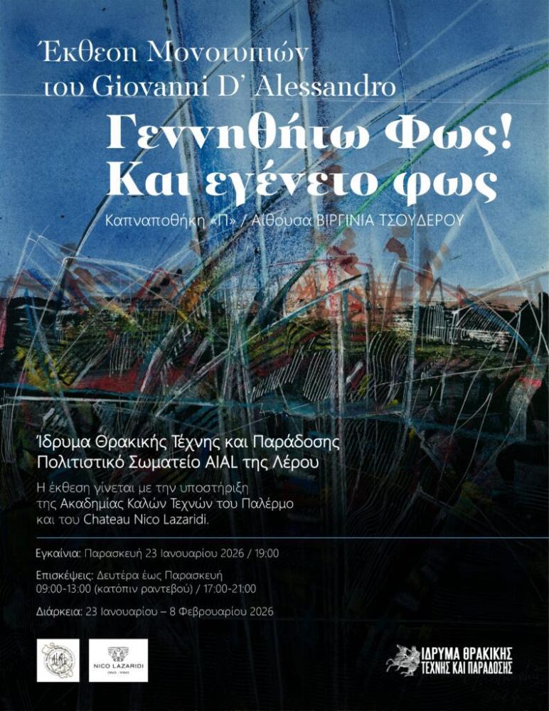Εγκαίνια εκθέσεως Μονοτυπιών του καθηγητή Giovani D' Alessandro, σε συνδιοργάνωση με το Οινοποιείο Λαζαρίδη της Δράμας.