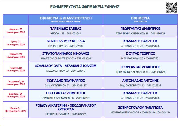 Τα εφημερεύοντα φαρμακεία στην Ξάνθη από 26 Ιανουαρίου έως 1 Φεβρουαρίου 2026