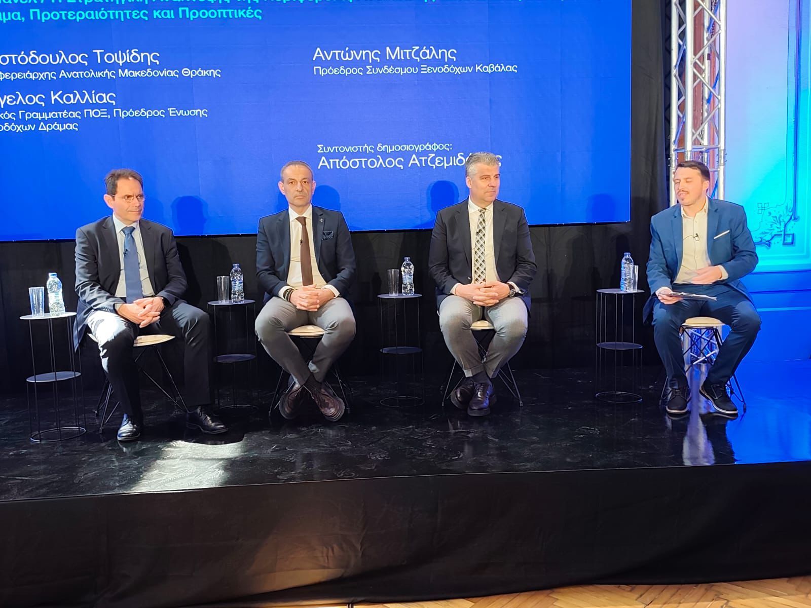 Στο πάνελ της συζήτησης συμμετείχαν επίσης ο Πρόεδρος των Ξενοδόχων Δράμας, κ. Άγγελος Καλλίας και ο πρόεδρος των Ξενοδόχων Καβάλας κ. Αντώνης Μιτζάλης, υπό τον συντονισμό του δημοσιογράφου κ. Απόστολου Αντζεμιδάκη. Παρόντες επίσης στην διαδικασία διαλόγου για τα σημαντικά θέματα του τουρισμού, ο πρόεδρος της ΠΟΞ κ. Γιάννης Χατζής και τα μέλη της διοίκησης της.