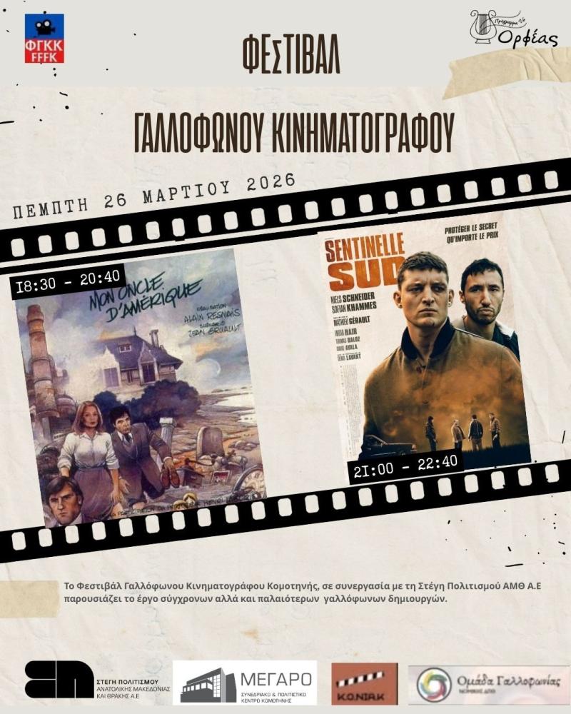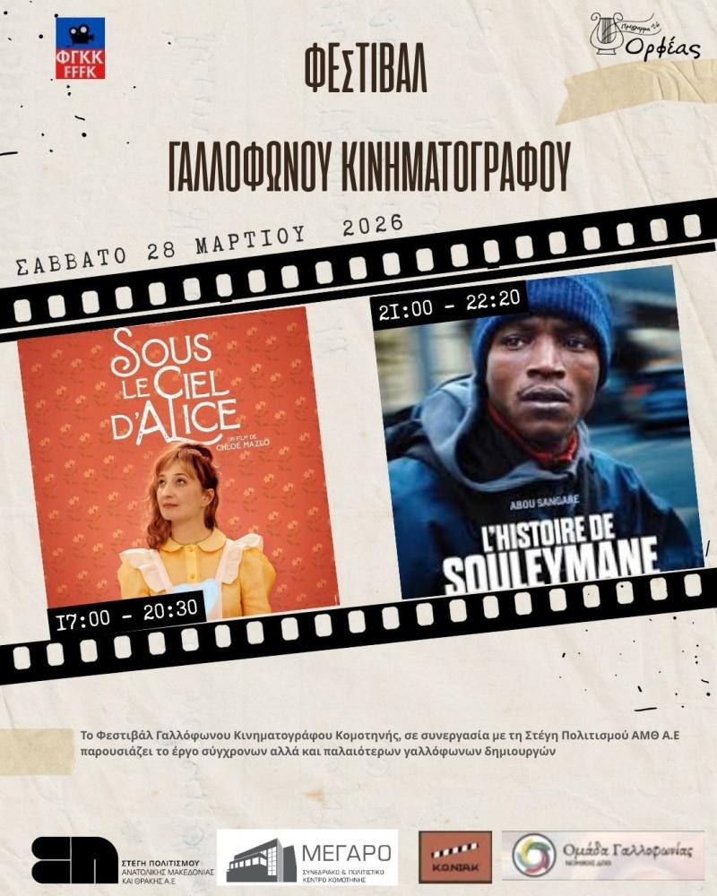 Η Στέγη Πολιτισμού ΑΜΘ Α.Ε. φιλοξενεί το Φεστιβάλ Γαλλόφωνου Κινηματογράφου 2026, παρουσιάζοντας τα έργα σύγχρονων αλλά και παλαιότερων γαλλόφωνων δημιουργών.