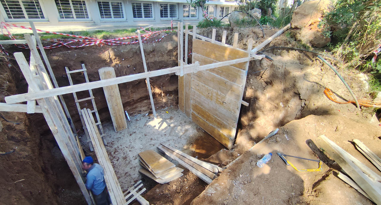 Στο πλαίσιο των εργασιών, έχει ήδη πραγματοποιηθεί εκσκαφή μεγάλου όγκου στο παρτέρι που βρίσκεται στην ανατολική πλευρά του κτιρίου. Σύμφωνα με τις διαθέσιμες πληροφορίες, πρόκειται για λάκκο διαστάσεων περίπου 5x5x5 μέτρων, ο οποίος προορίζεται να φιλοξενήσει τη δεξαμενή που θα καλύψει τις ανάγκες πυρόσβεσης της εγκατάστασης.