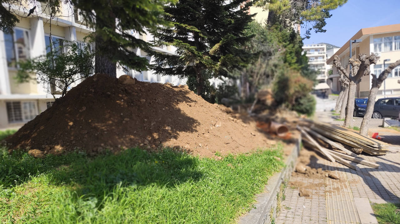 Παρατηρώντας το εργοτάξιο, αντιλαμβανόμαστε ότι σε σύντομο διάστημα, με την ολοκλήρωση του έργου, θα αποκατασταθεί η αισθητική του χώρου πρασίνου, στην πρόσοψη του κτιρίου, στην ανατολική πλευρά.