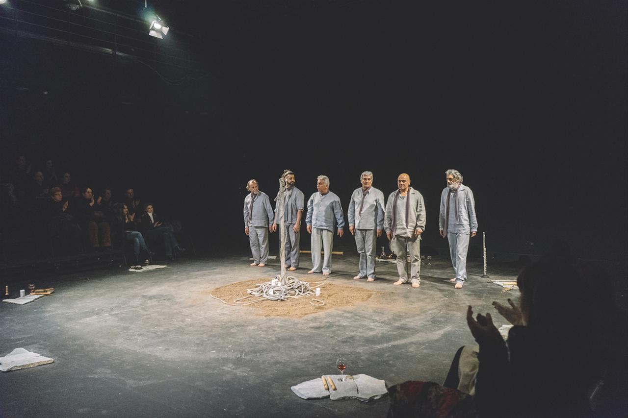Έτσι λοιπόν, μέσω αυτού του "διαλόγου" που αναπτύσσεται μεταξύ τους, αλλά και της λιτής θεατρικής μορφής –αφαιρετικό σκηνικό, μουσικοί ήχοι που υπογραμμίζουν και εκτελούνται από τους ίδιους του ηθοποιούς επί σκηνής– δημιουργήσαμε ένα "τελετουργικό δρώμενο" έχοντας σε προτεραιότητα την προβολή του κειμένου και όχι της εικόνας.