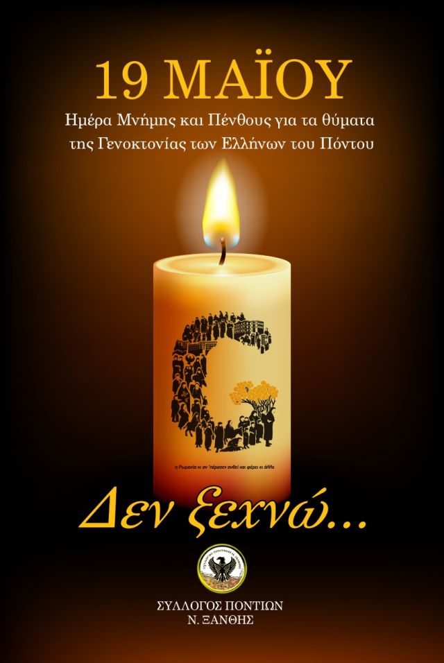 Ημέρα Μνήμης της Γενοκτονίας των Ελλήνων του Πόντου η 19 Μαΐου και ο Σύλλογος Ποντίων Ν. Ξάνθης , όπως κάθε χρόνο, τιμά τα 353.000 θύματα της απάνθρωπης θηριωδίας.