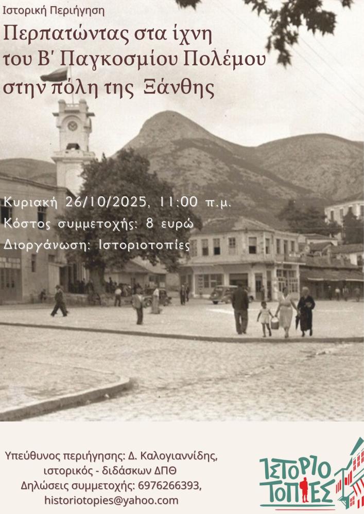 Στο πλαίσιο αυτό, η περιήγηση θα πραγματοποιηθεί σε διάφορα σημεία της πόλης, τα οποία συνδέονται με την περίοδο του ελληνοϊταλικού πολέμου και της γερμανοβουλγαρικής κατοχής.