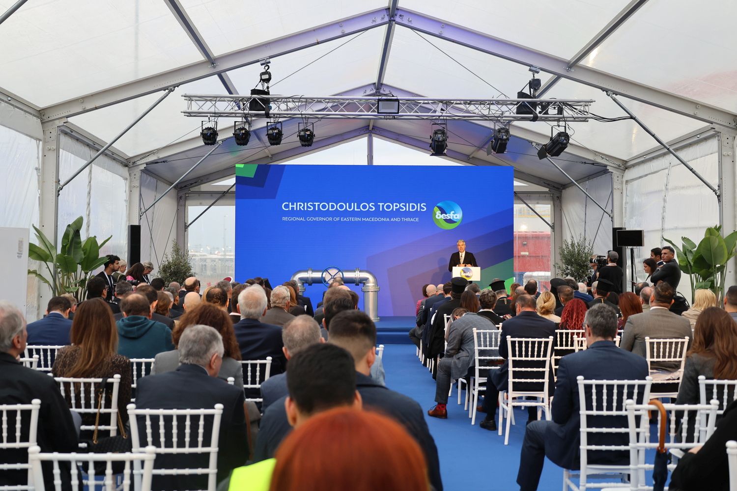 Ο Περιφερειάρχης κος Τοψίδης εξήρε τη σημαντική επενδυτική παρουσία του ΔΕΣΦΑ στην Ανατολική Μακεδονία και Θράκη, η οποία, όπως είπε, «αναμένεται να ξεπεράσει τα 0,5 δισ. ευρώ». «Οι επενδύσεις αυτές δεν ενισχύουν μόνο την ενεργειακή διασύνδεση της χώρας, αλλά δημιουργούν και σημαντικές ευκαιρίες ανάπτυξης για την τοπική κοινωνία, προσφέροντας θέσεις εργασίας, τεχνογνωσία και υποδομές υψηλής τεχνολογίας».