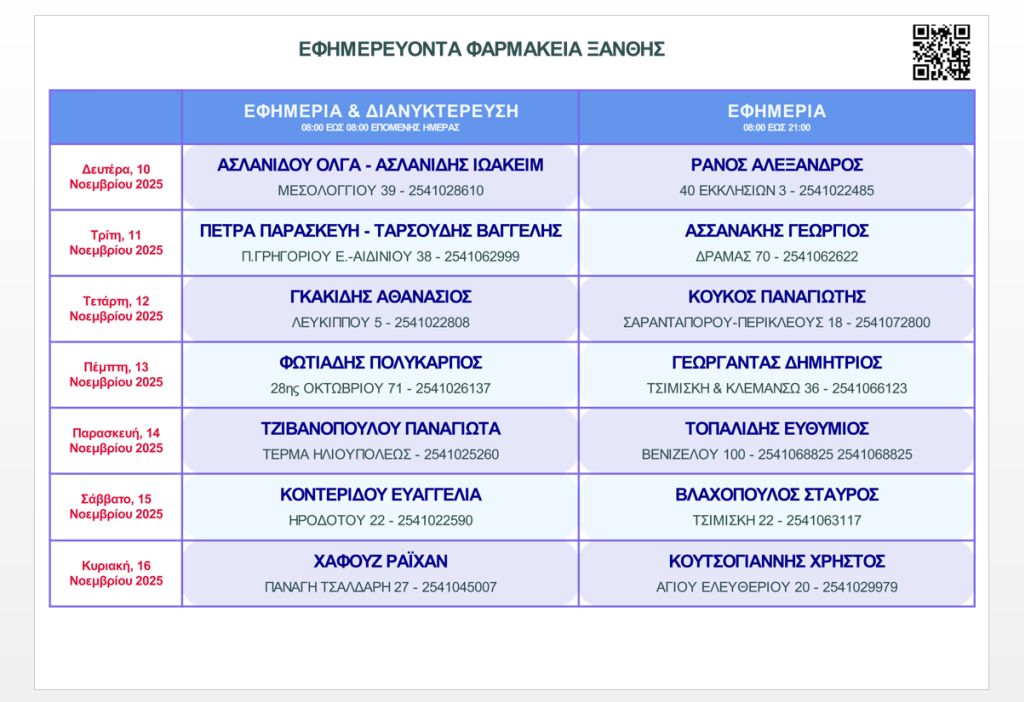 Δείτε τα εφημερεύοντα φαρμακεία από τη Δευτέρα 10 έως και την Κυριακή 16 Νοεμβρίου στην Ξάνθη: