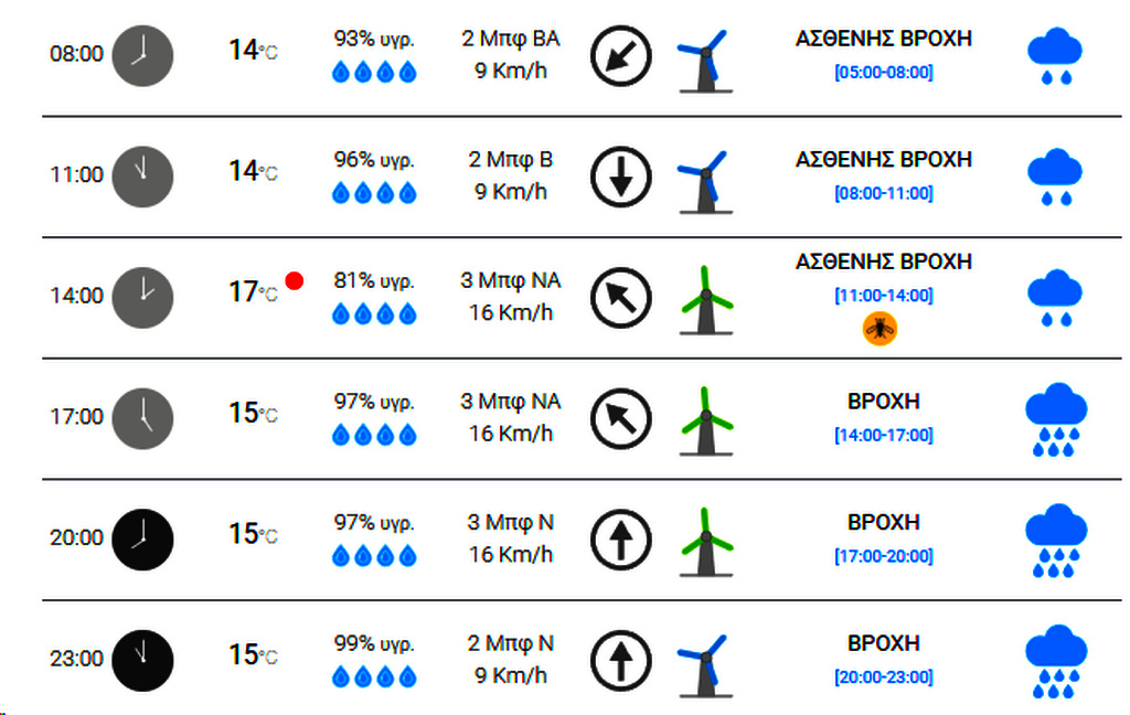 Στην υπόλοιπη χώρα λίγες νεφώσεις κατά διαστήματα αυξημένες με τοπικές βροχές. Σποραδικές καταιγίδες θα εκδηλωθούν μέχρι το μεσημέρι στα βορειοανατολικά και το βράδυ στη Θεσσαλία και την κεντρική Μακεδονία.