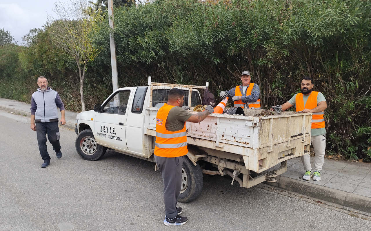 Σήμερα, Τετάρτη 19 Νοεμβρίου 2025, τα συνεργεία παρενέβησαν σε τρεις κομβικές οδούς της πόλης — Σάρδεων, Λευκού Πύργου και Μεσολογγίου — όπου διαπιστώθηκε συσσώρευση υλικών που εμπόδιζαν την κανονική ροή των όμβριων νερών.