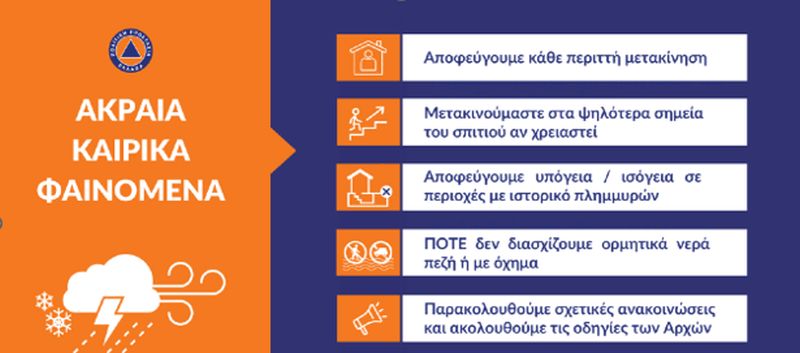 Ακολουθούν οδηγίες αυτοπροστασίας από την Γενική Γραμματεία Πολιτικής Προστασίας: