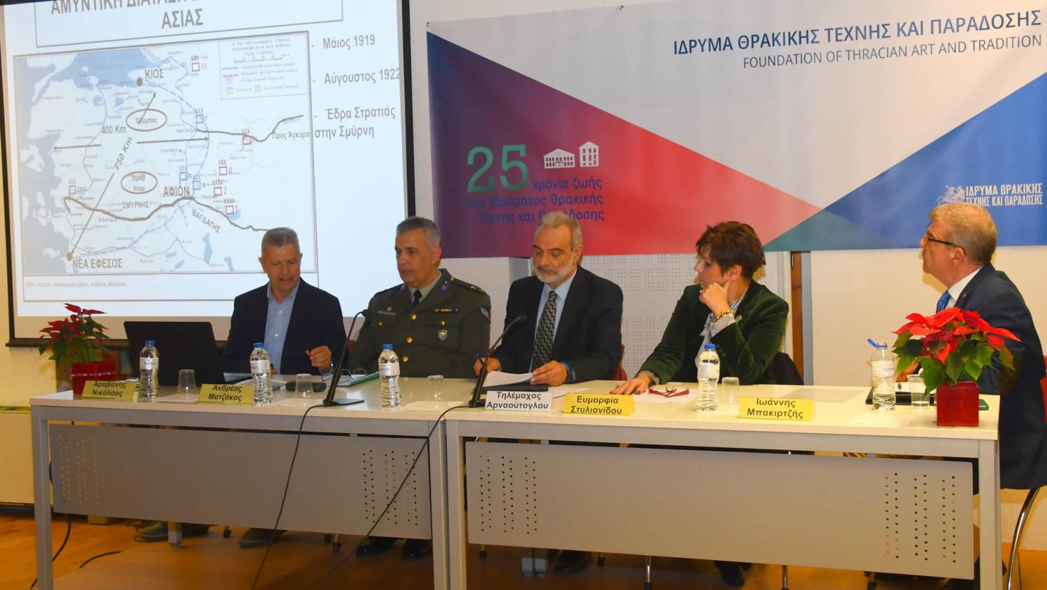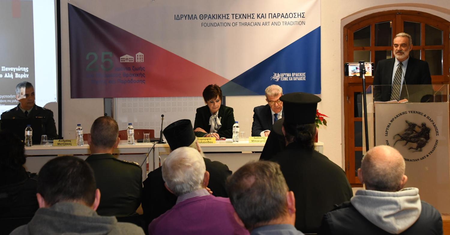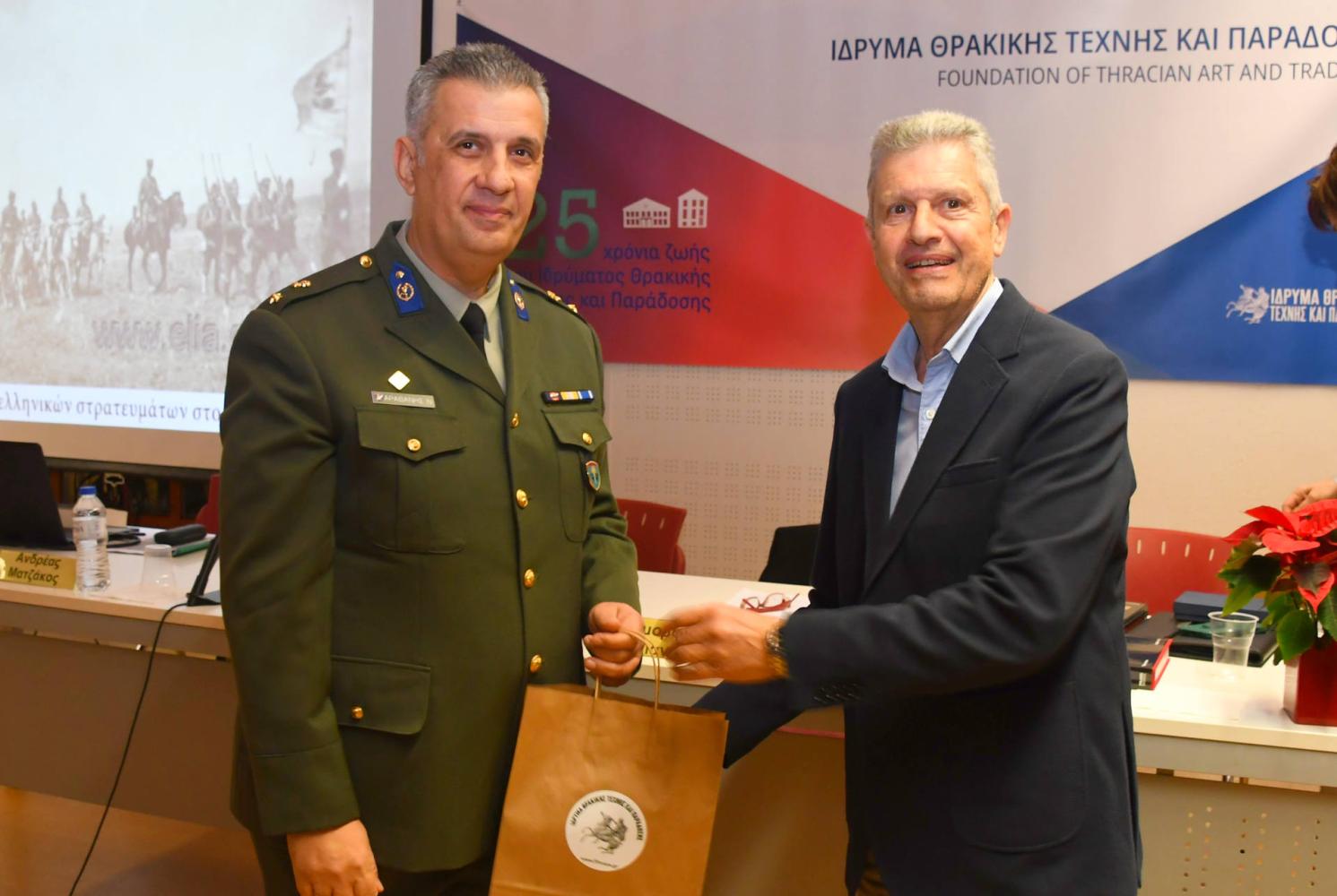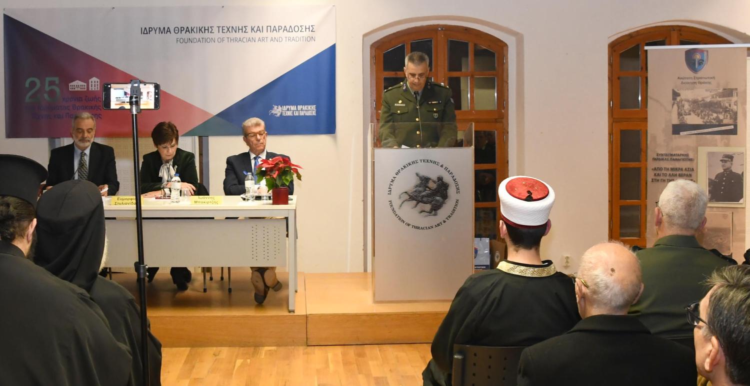 Ευχαριστώ για την προσοχή σας, κυρίως όμως και για την πρωτοβουλία του Στρατηγού Διοικητή της Ανώτατης Στρατιωτικής Διοίκησης Θράκης, κ. Παναγιώτη Καβιδόπουλο, του Διευθυντή του Ιδρύματος Θρακικής Τέχνης και Παράδοσης, Αντιστράτηγου εν αποστρατεία Ανδρέα Ματζάκου και του Καθηγητή του Τμήματος Φιλολογίας, Ιστορίας και Ανθρωπολογίας του Δ.Π.Θ., κου Ιωάννη Μπακιρτζή, που συνεργάστηκαν για την εκδήλωση αυτή και με τίμησαν καλώντας με ως ομιλήτρια.