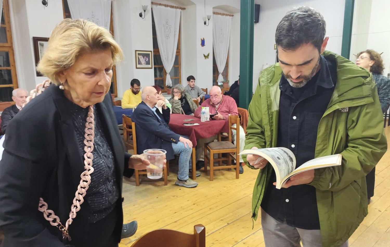 Η Μαρία Πετρά στο ξεκίνημα της εκδήλωσης, μετέφερε χαιρετισμό από τη Σταυρούλα –Βίλλυ Φωτοπούλου, Διευθύντρια Νεότερης Πολιτιστικής Κληρονομιάς στη Γενική Διεύθυνση Αρχαιοτήτων και Πολιτιστικής Κληρονομιάς.