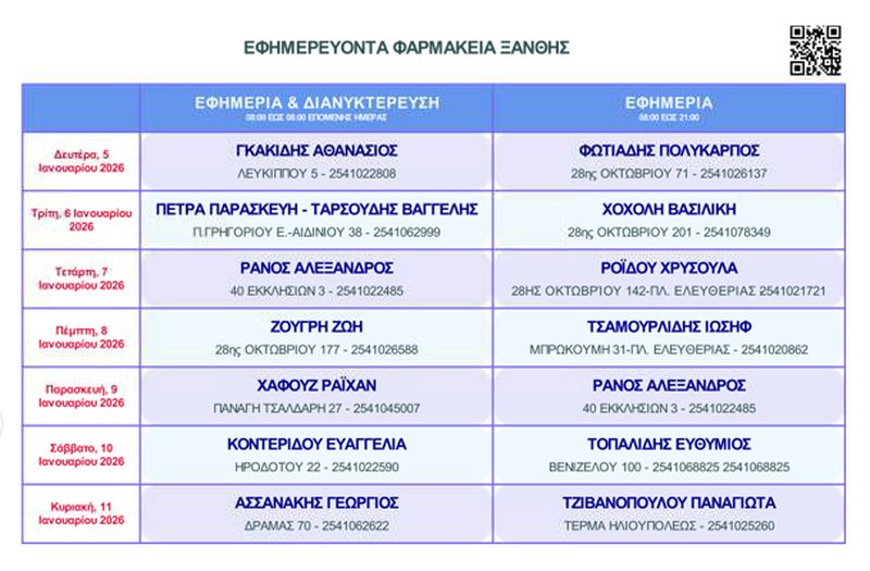 Δείτε τα εφημερεύοντα φαρμακεία από 5 έως 11 Ιανουαρίου 2026 στην Ξάνθη