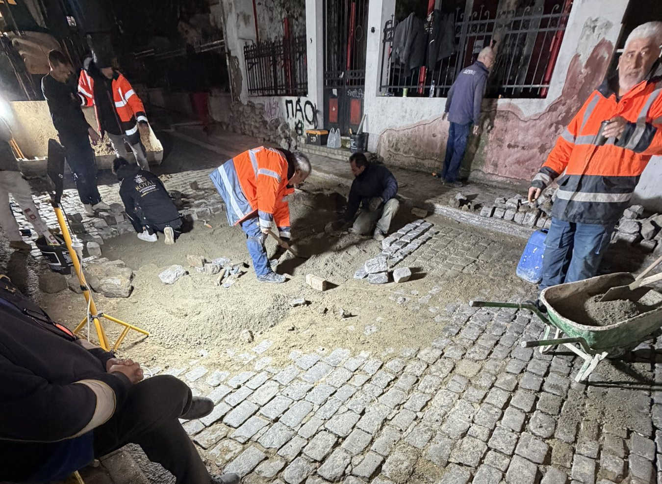 Το συνεργείο λοιπόν κλήθηκε να αποσύρει τους κυβόλιθους, να εντοπίσει και να αντιμετωπίσει τη βλάβη και αφού λύσει το ζήτημα, να επαναποθετήσει του κυβόλιθους….