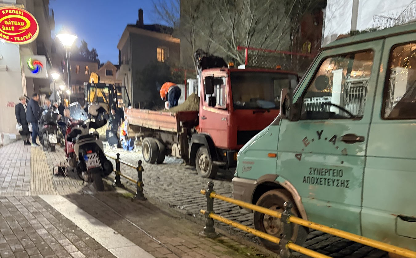 Στην οδό Βασιλέως Κωνσταντίνου, παρατηρήθηκε καθίζηση του οδοστρώματος και αυτό σχεδόν αυτόματα ταυτόχρονα συνεπάγεται και σπασμένο αγωγό.