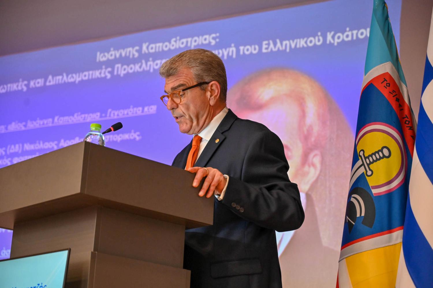 γ. Ομιλία από τον Ανθυπαστυνόμο κ. Δημήτριο Φεγγομύτη, υποψήφιο Διδάκτορα Ιστορίας του Δημοκρίτειου Πανεπιστημίου Θράκης, με θέμα «Η άσκηση εξωτερικής πολιτικής από τον Ι. Καποδίστρια - Αγώνας εν μέσω προκλήσεων».