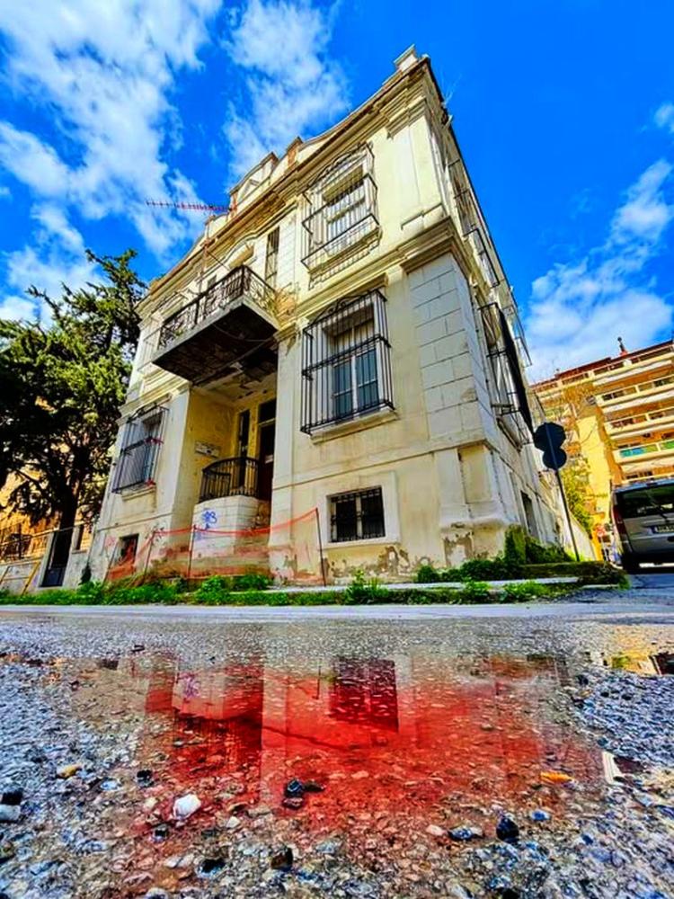 Ήταν χρωματισμένο νερό από υδρορροή γειτονικής οικοδομής. Κάποια καλονοικοκυρά ξέπλενε, μάλλον, στο μπαλκόνι της τη βαφή από τα σκεύη όπου έβαψε τα κόκκινα αβγά, μέρα που είναι.