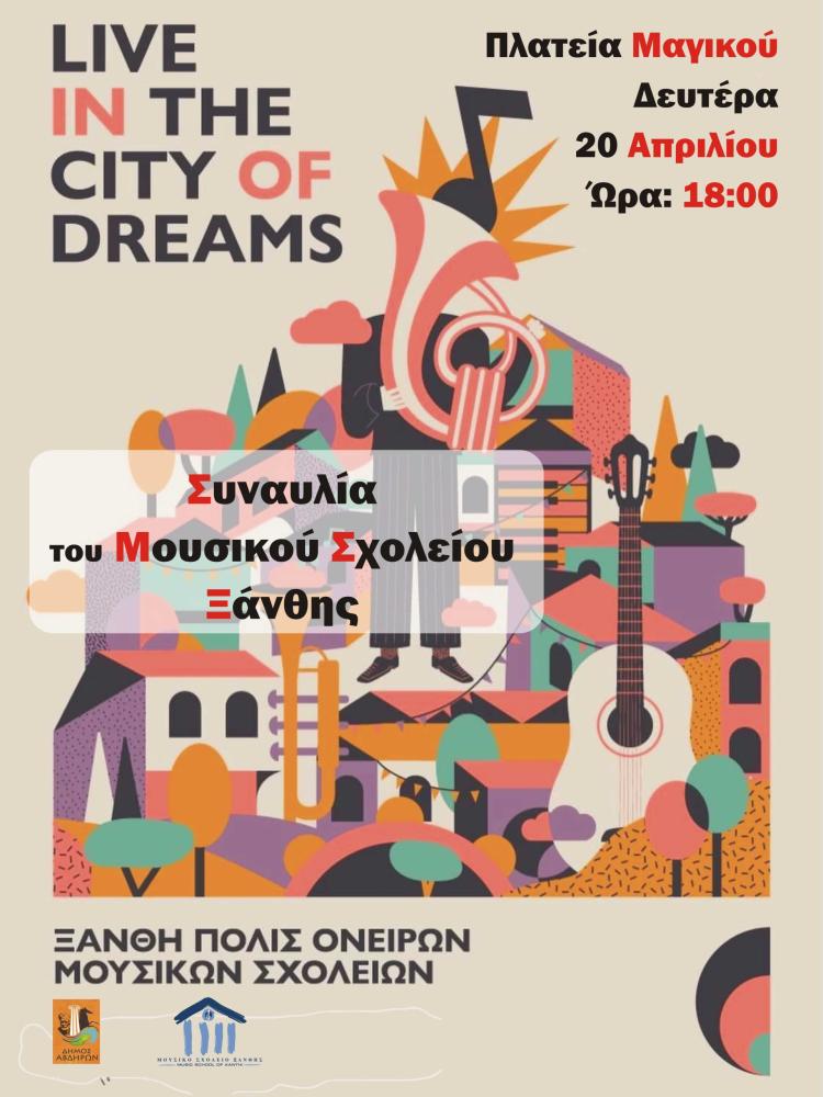 Το Μουσικό Σχολείο Ξάνθης σας προσκαλεί στη συναυλία λαϊκού τραγουδιού που συνδιοργανώνει με τον Δήμο Αβδήρων στα πλαίσια του φεστιβάλ Ξάνθη Πόλις Ονείρων Μουσικών Σχολείων 2026 τη Δευτέρα 20 Απριλίου 2026 και ώρα 18:00 στην Πλατεία του Μαγικού. Η είσοδος είναι ελεύθερη για το κοινό.